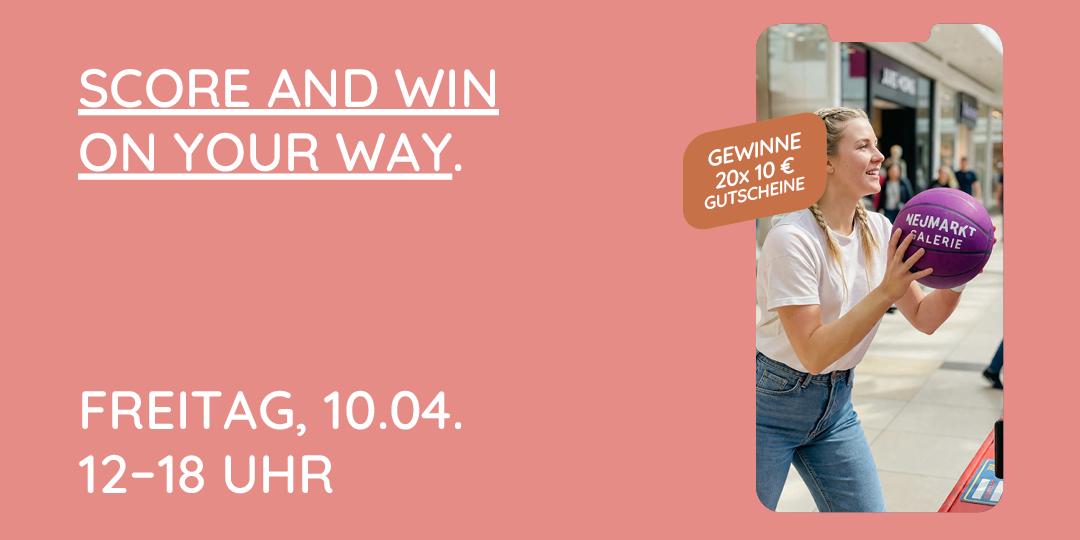 Am Feel Good Friday, am 10.04., wird dein Shoppingbesuch in der Neumarkt Galerie sportlich: In der Rotunde im Untergeschoss wartet unser Pop-Shot auf dich. Zwischen 12 und 18 Uhr heißt es zielen, werfen und den Basketballkorb treffen.